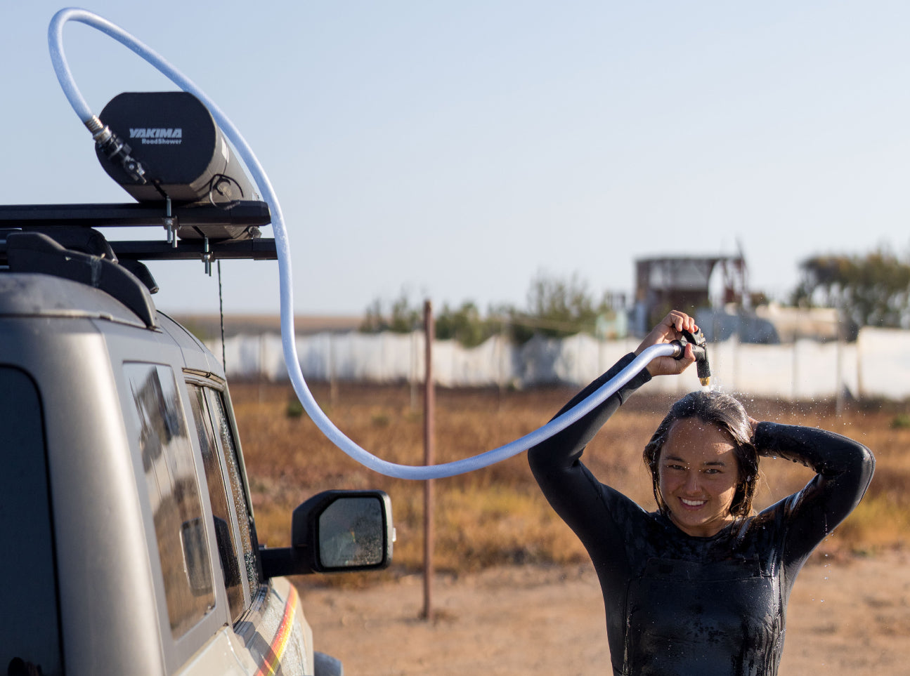 Sandy feet, dirty paws, and muddy bikes. The RoadShower is your trusty sidekick for the convenience of pressurised water in the middle of nowhere. Its dependable attachment to your vehicle or trailer allows you to roam freely. And, while you're out having fun, the sun heats up the water in the tank. Check the thermometer and you can enjoy a warm shower, or blast off those messy campsite dishes.