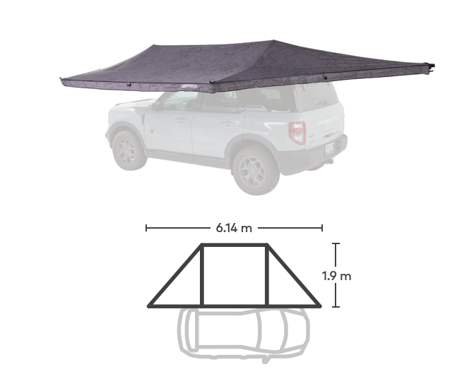 - Freestanding awning with heavy duty support arms make deployment effortless