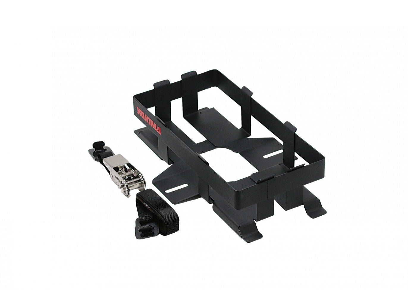 • Includes cage and ratchet strap to ensure a secure, rattle-free fit