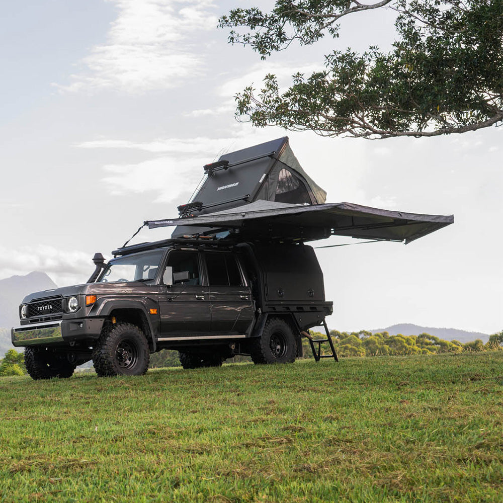 Taking It Easy just got easier with the OverNOut 180. Built with strength and ease in mind, this freestanding beauty protects you from both rain and sun with 8.73 sqm of coverage. Installation is quick and easy with integrated t-slot attachments to connect to your favorite T-slot crossbar or platform. So, whether you’re looking to chill at the campsite or to be the center of attention at the next outdoor event, the OverNOut 180 has got you covered literally.